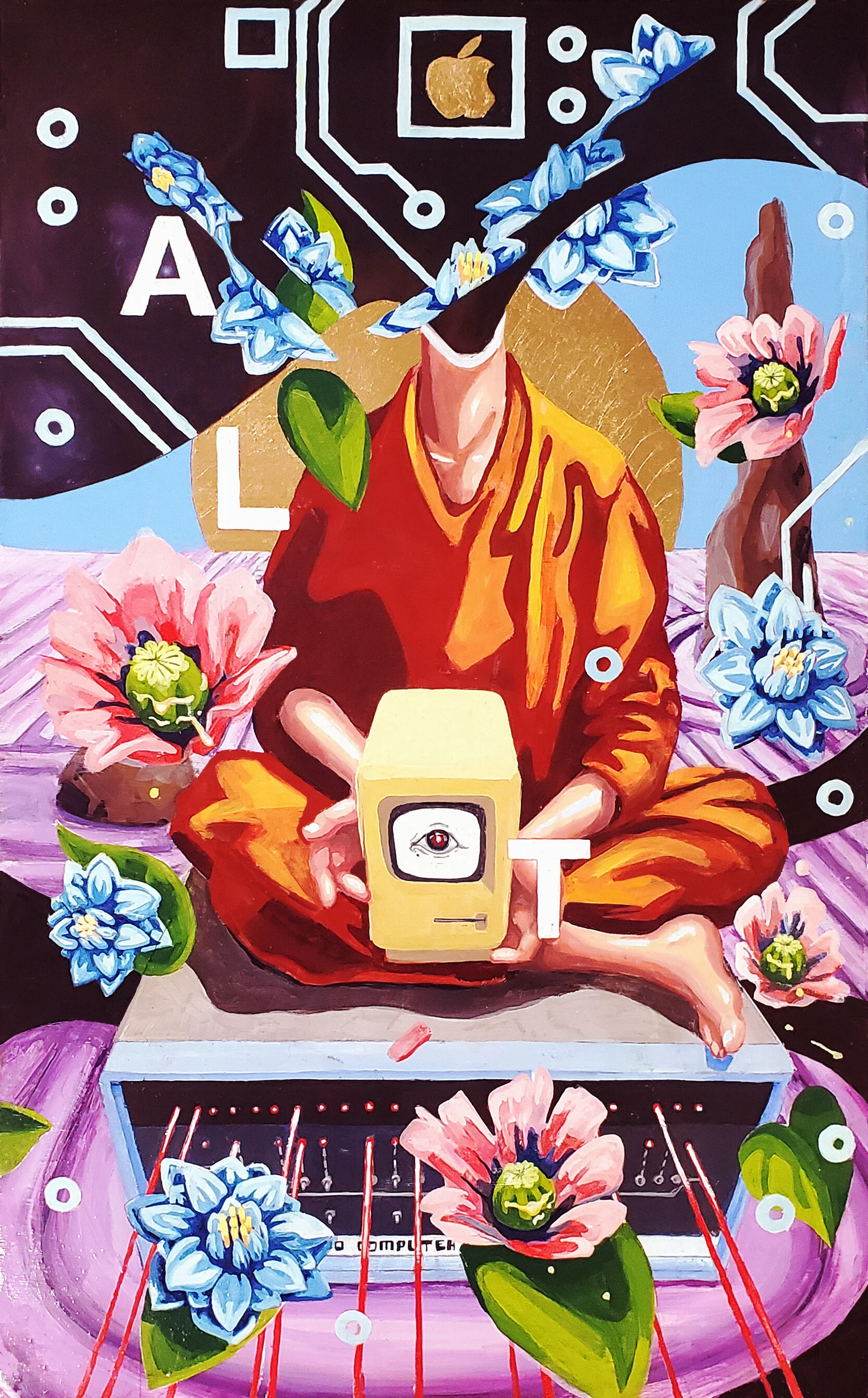 Augmented Reality Painting - Image was scanned throughout painting, isolated those layers in Photoshop, animated in After Effects, Artivive for the AR effects